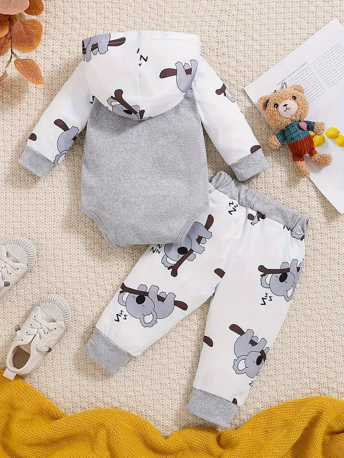 - Adorable Koala Print Hooded Romper & Pants Set for Youngsters Boys - Cozy Polyester, Machine Washable - Perfect for Fall/Winter, Perfect for Outdoor BS6140B