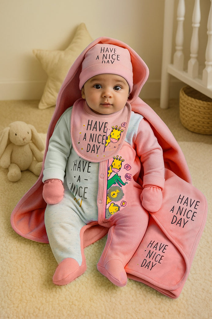 - Have a Nice Day Pink Newborn (0-3 Months) Baby 5 Pieces Suit Set, Autumn/Winter Comfort, Easy Diaper Change, Newborn Clothing, Dressy Style, Comfortable Fit, New Parents, Perfect for Outdoor BS6417B