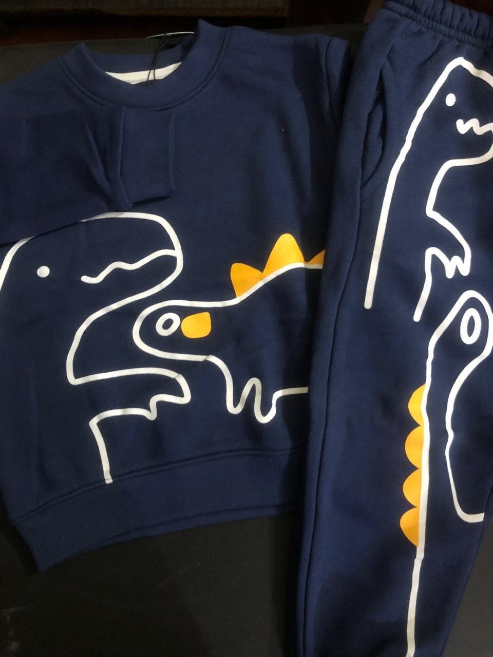- JF 2 PC Navy Dino Autumn & Winter Terry Fabric Track Suit, Sweatshirt and Trouser Set TS6418K