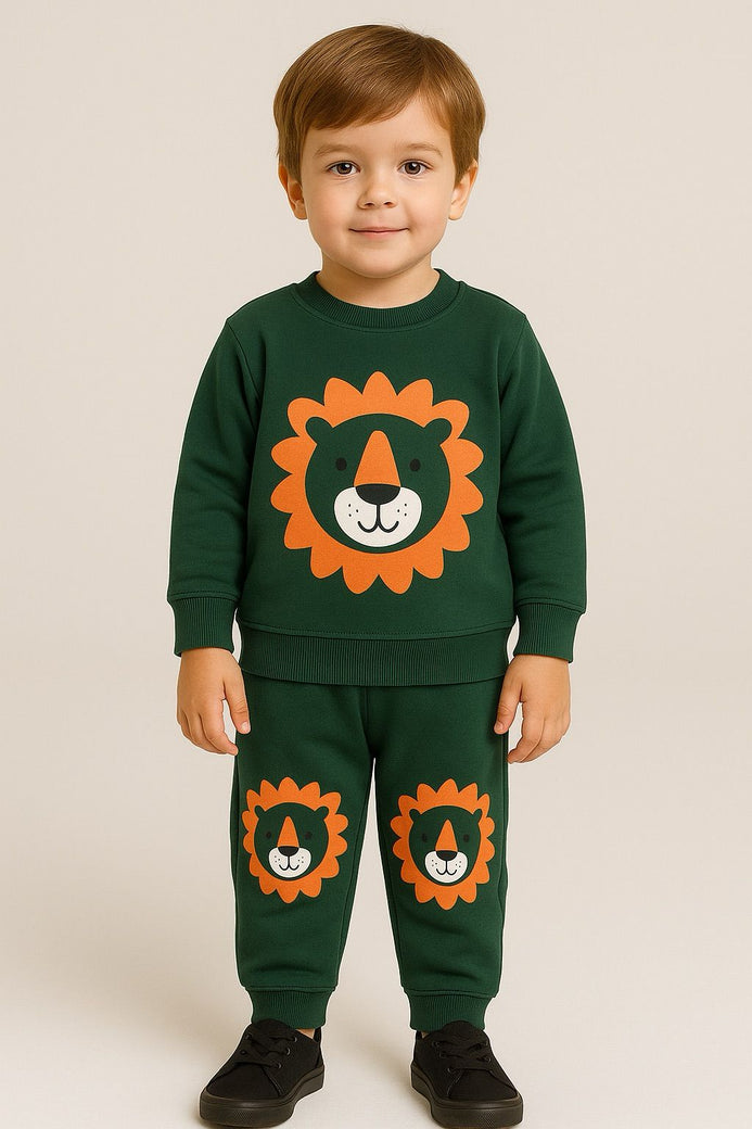 - 2 PC Green Baby and Children's Autumn & Winter Flees Cartoon Print Casual Sweatshirt Sweatshirt and Trouser Set TS6412C