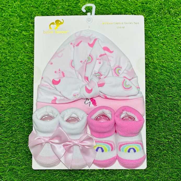 BF Pink+White 4 Pieces Caps & Socks Set CP5013E