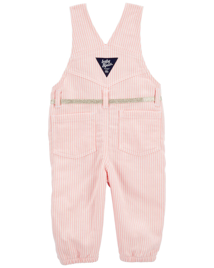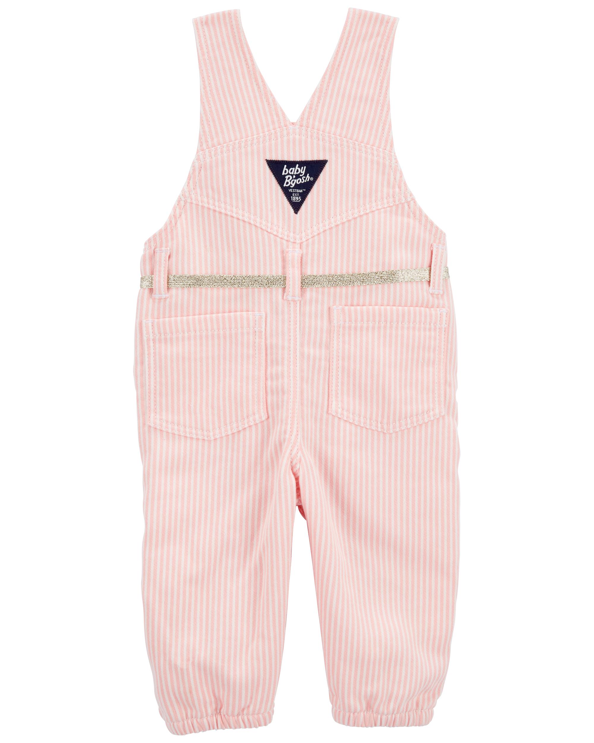 - Pink Hickory Stripe Full Length Overalls Dungaree with Ribbon Belt, Perfect for Outdoor FD
