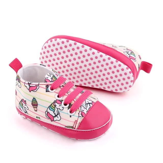 - Baby Pink Cartoon Print with Laces Booties BTS9021C