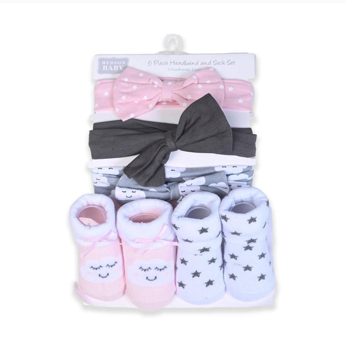 HB White+Pink Headband & Socks 5pcs Set HA4001B