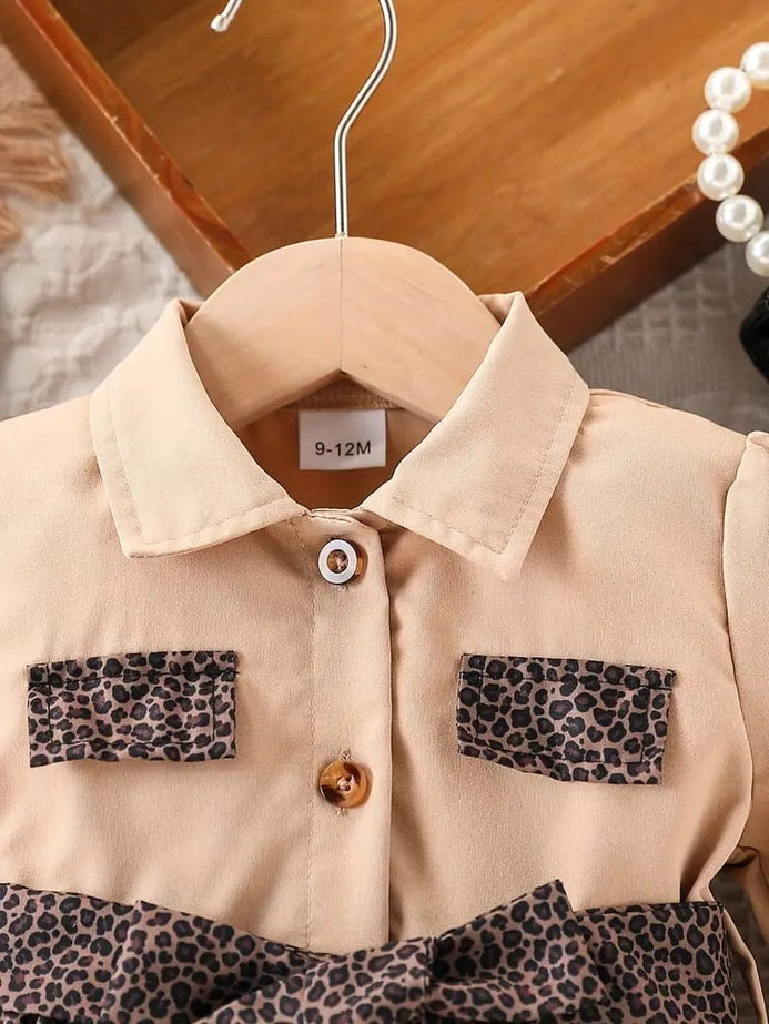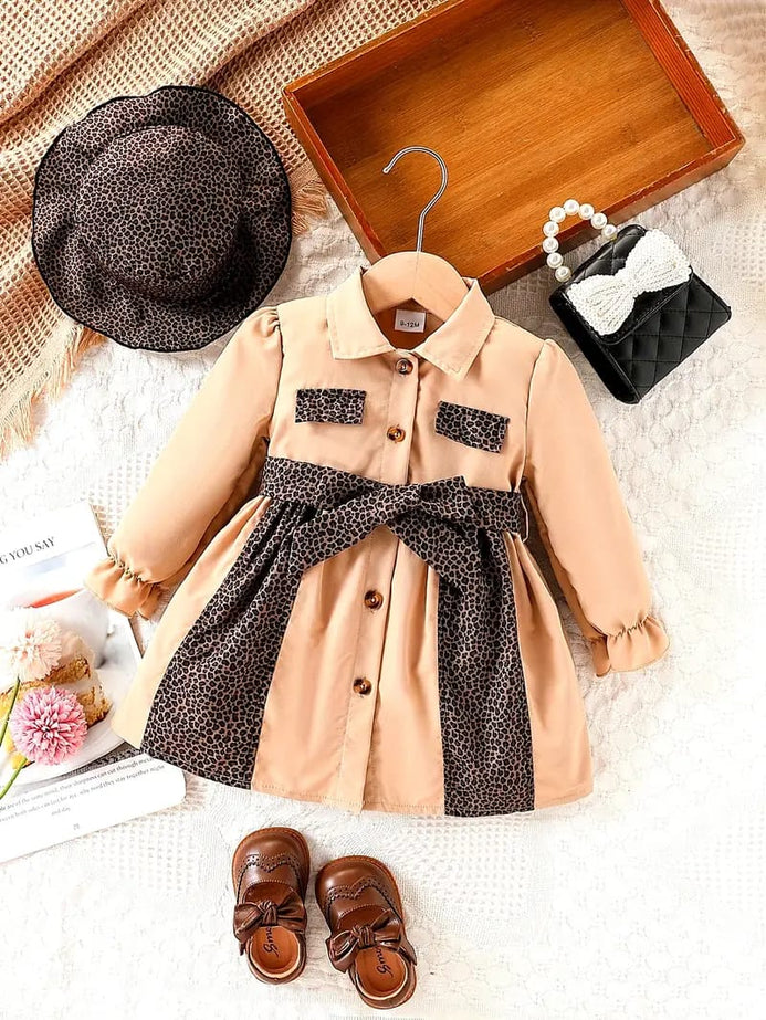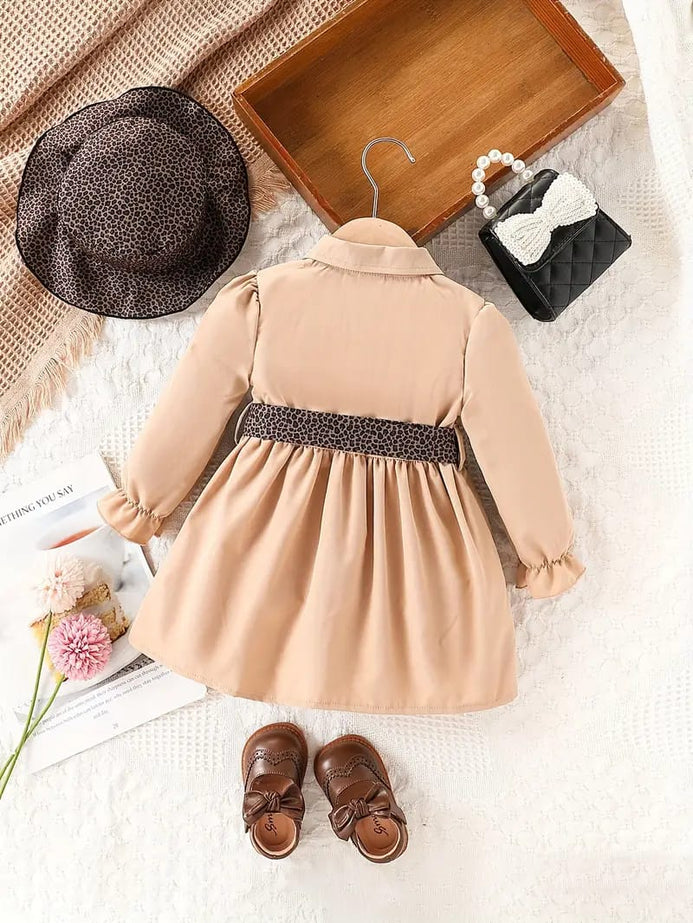 Baby Girl's Beige & Black Striped Sleeve Dress with Pockets - Cute Spring/Fall Outfit, Charming Outfit, Comfortable Wear, Stylish Outfit, Toddler Fashion FD6145E
