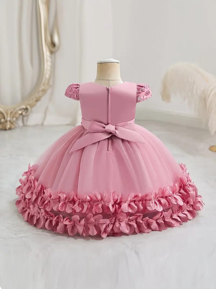 - Baby's Elegant Embroidery Mesh Splicing Princess Dress, Flower Decor Cap Sleeve Gown, Toddler Girl's Clothing For Formal Occasion FD6103C