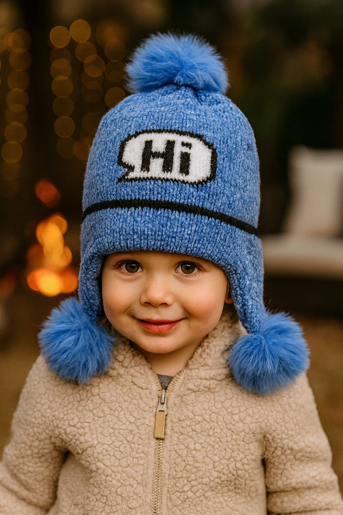 - Blue Winter Warm "Hi" Wool Cap (1-4 Years) CP5005B