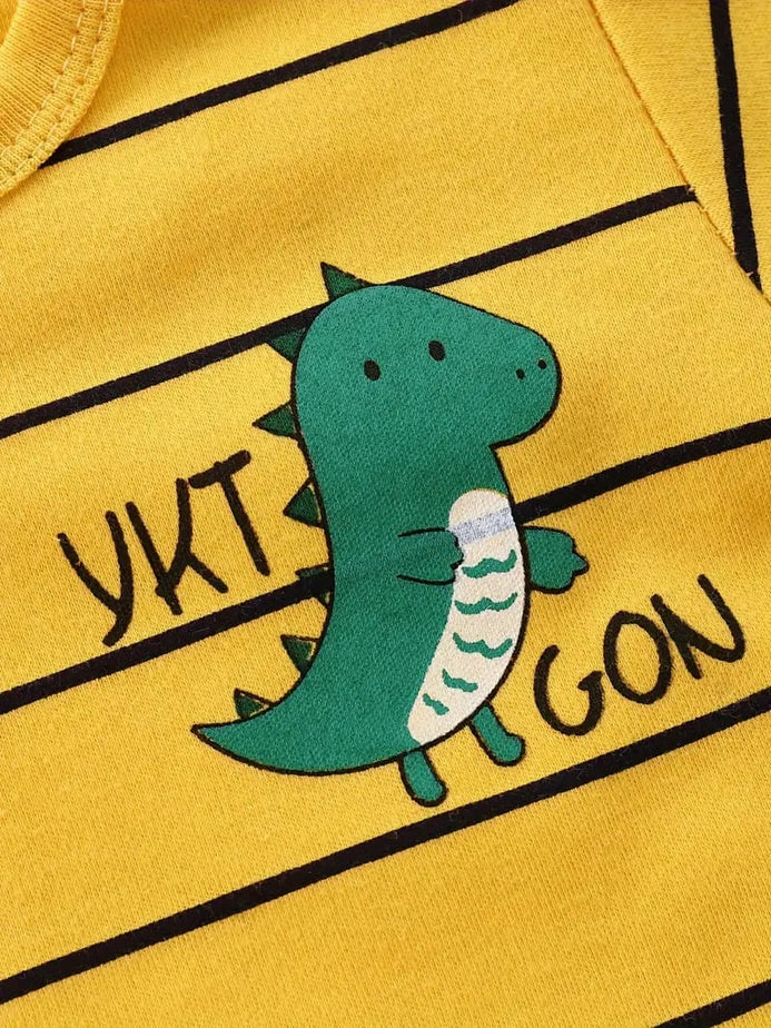 Boy's Clothing Set Youngsters's Autumn and Winter Comfortable Pure Cotton Hoodie Cute Dinosaur Animal Print Pants Striped Top + Pants, 2pcs Set Boy's Clothes, Perfect for Outdoor TS6404A
