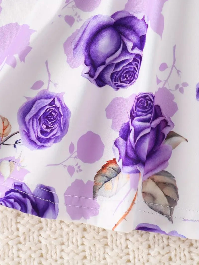 - Girls' 2pcs Spring/Fall Outfit Set, Casual Crew Neck Long Sleeve Top with Solid Color Block & Floral Printed Skirt FD6146F