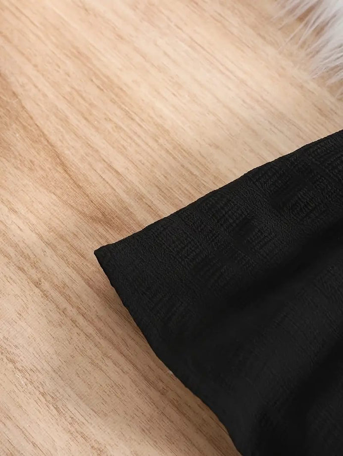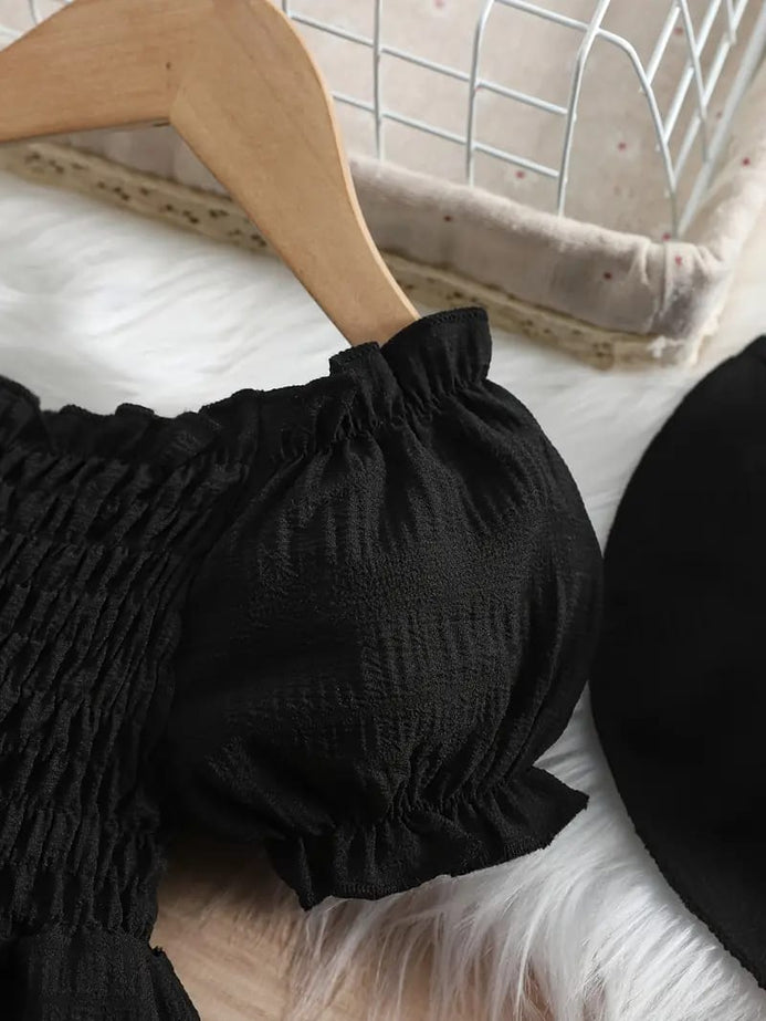 - Girls' Black New Summer Bubble Sleeve Plain Color Dress with Cute Hat Two-piece Set Princess Dress FD6111C