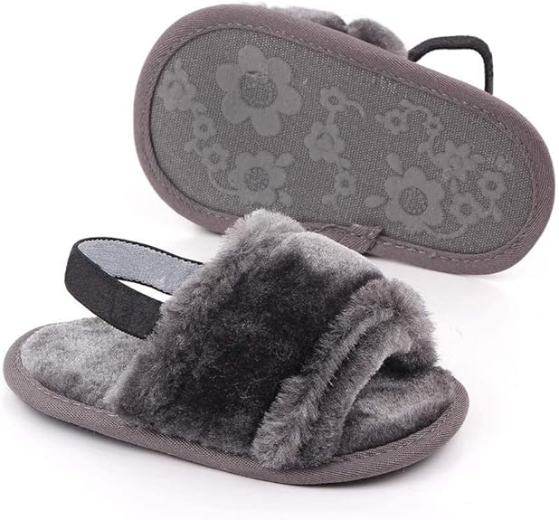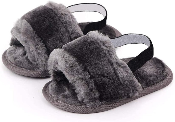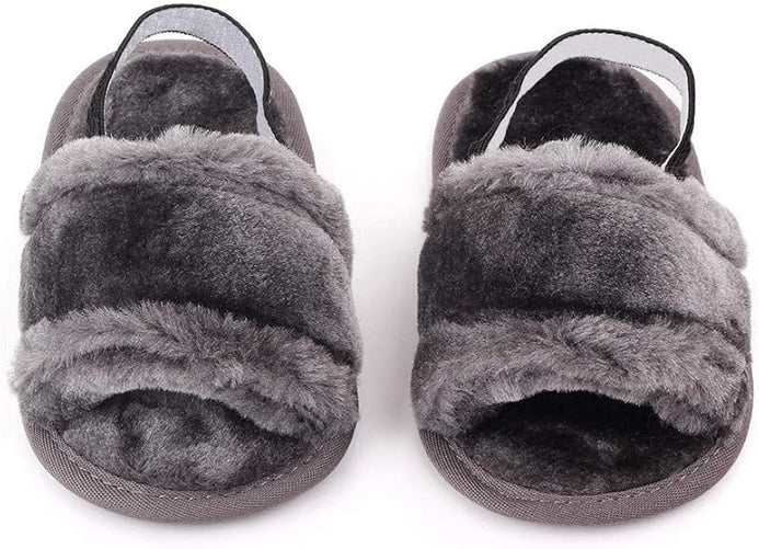 - Gray Baby Girls Soft Sole Fur Slippers SLP8013E