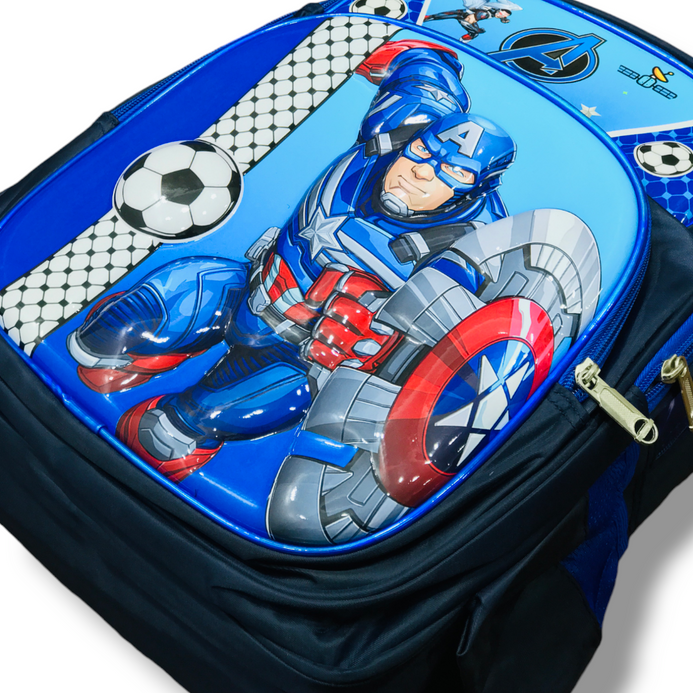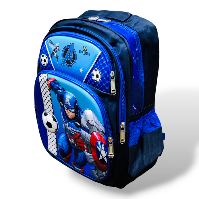 This 16 inch Avengers school bag is the perfect way to keep your child's school supplies organized and their love of Avengers close by. The backpack features a spacious main compartment with enough room to fit books, notebooks, folders, and other essentials. There is also a front pocket for smaller items, and two mesh side pockets for water bottles or snacks. The backpack is made from durable fabric and features padded shoulder straps and a padded back for added comfort. The Avengers design is sure to turn heads, and your little superhero will love carrying this bag to school every day.