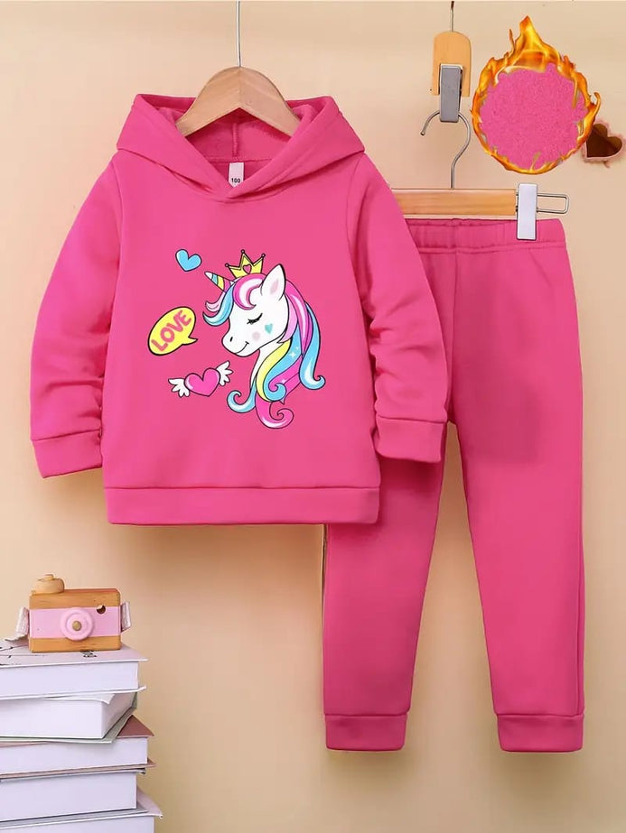 - Rose Red Unicorn Graphic Winter Hoodie & Pants 2 Pc Set TS6032B
