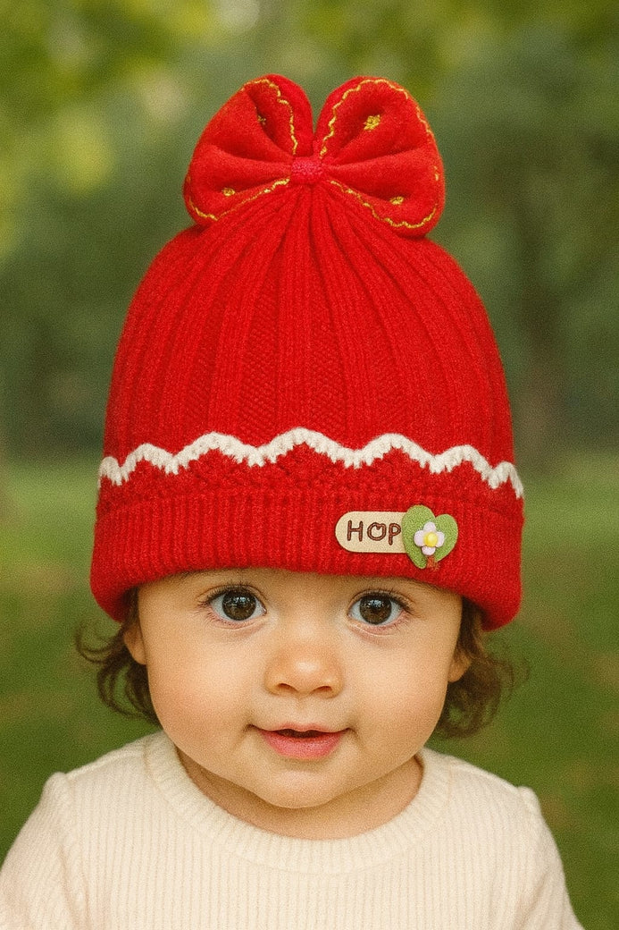 - Red Fashion Happy Baby Knitted Warm Winter Wool Cap (6 Months -3 Years) CP5088A