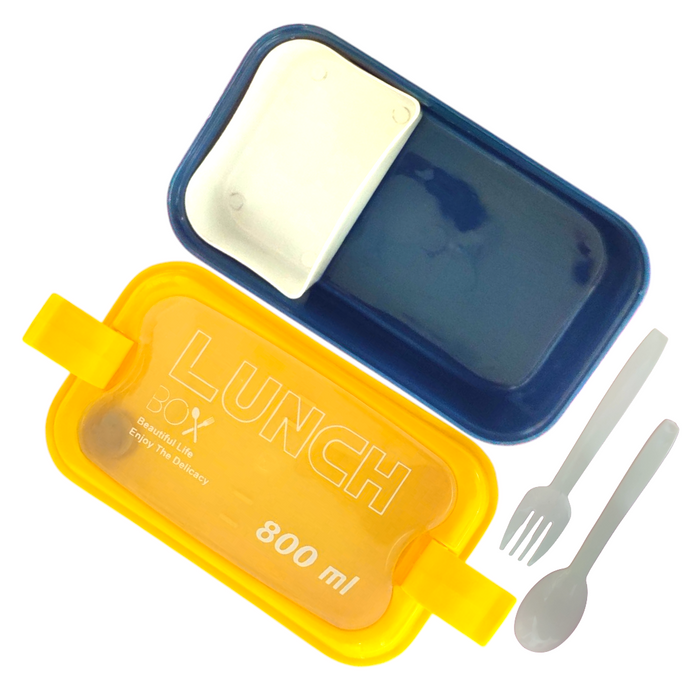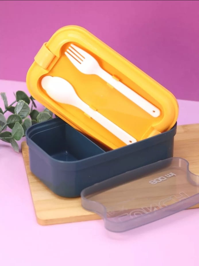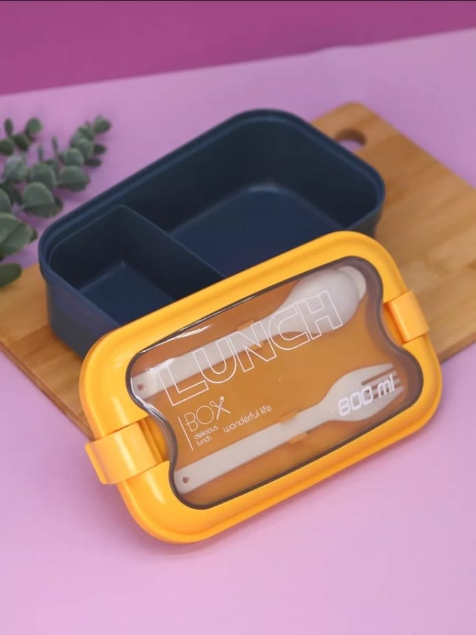 - 2 Compartment Lunch Box: This plastic lunch box has two compartments, can choose, you can carry different kinds of lunch food in one container, no need to mix together, with spoon and fork, built-in cutlery storage , don't be afraid to forget to bring cutlery.