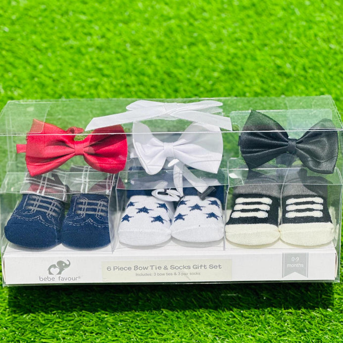 BF socks and Bow Ties giftset is the perfect accessory set for your little one. Our giftset includes coordinating Bow Ties and socks, so your baby is looking fashionable from head to toe. Our Bow Ties and socks are great for dressing up or everyday wear. Our giftset comes in an adorable gift box and makes a terrific baby gift.