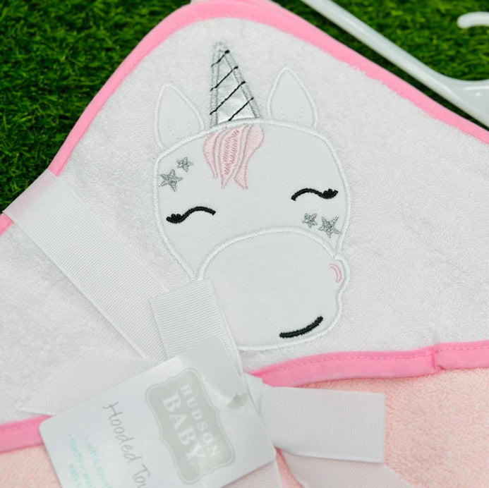 Hudson Baby character face hooded towels are made of 100% woven cotton terry and are available in a variety of adorable character face options. Our hooded towels are more than generously sized at 30x30 inches to cover baby head to toe after bath or swim time. Our fun designs and large towels are perfect for baby and toddlers.