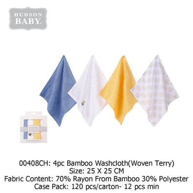 HB 4-Piece Washcloths are made of 70% Rayon from Bamboo 30% Polyester and measure 25x25cm, giving parents a large, soft washing accessories that will help make bath time easier. Machine washable for easy cleaning, these wash clothes have one embroidered animal cloth and three adorable coordinating colors. Perfect for taking when traveling or bringing to daycare.