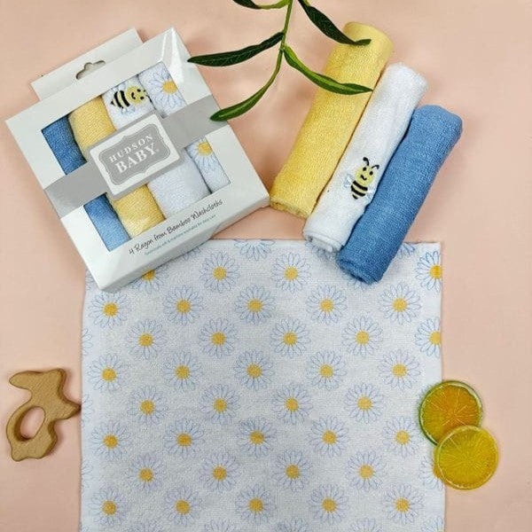 HB 4-Piece Washcloths are made of 70% Rayon from Bamboo 30% Polyester and measure 25x25cm, giving parents a large, soft washing accessories that will help make bath time easier. Machine washable for easy cleaning, these wash clothes have one embroidered animal cloth and three adorable coordinating colors. Perfect for taking when traveling or bringing to daycare.