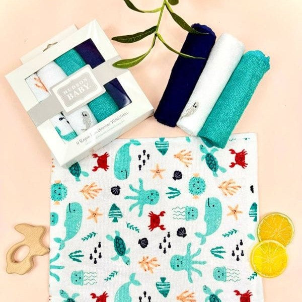 HB 4-Piece Washcloths are made of 70% Rayon from Bamboo 30% Polyester and measure 25x25cm, giving parents a large, soft washing accessories that will help make bath time easier. Machine washable for easy cleaning, these wash clothes have one embroidered animal cloth and three adorable coordinating colors. Perfect for taking when traveling or bringing to daycare.