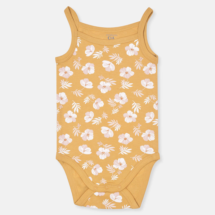 - C&A Mustard Floral Sleeveless Romper BS6119D