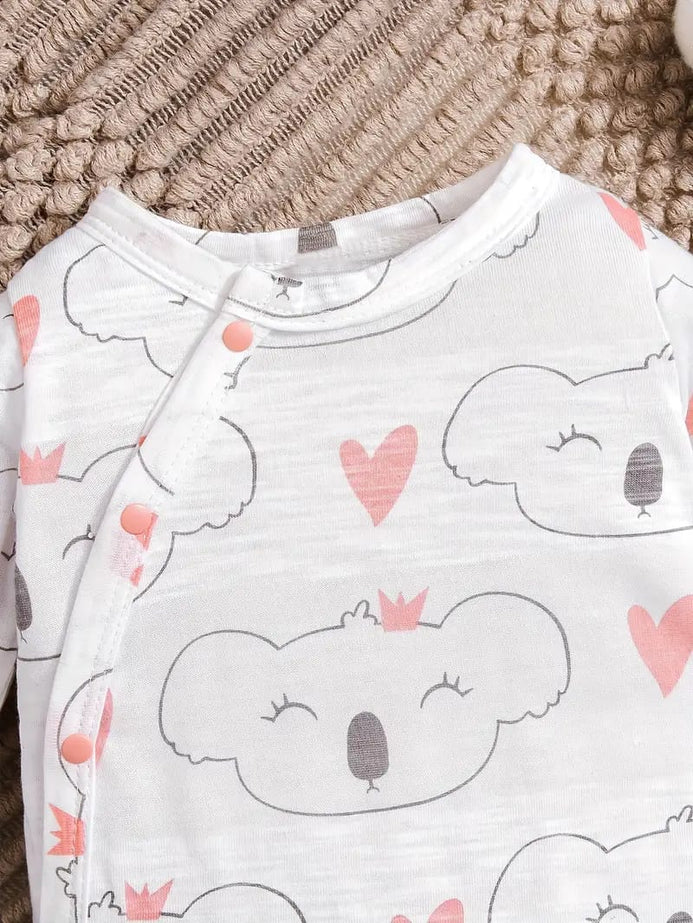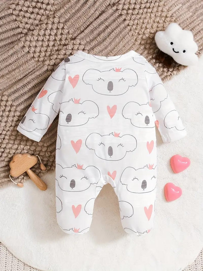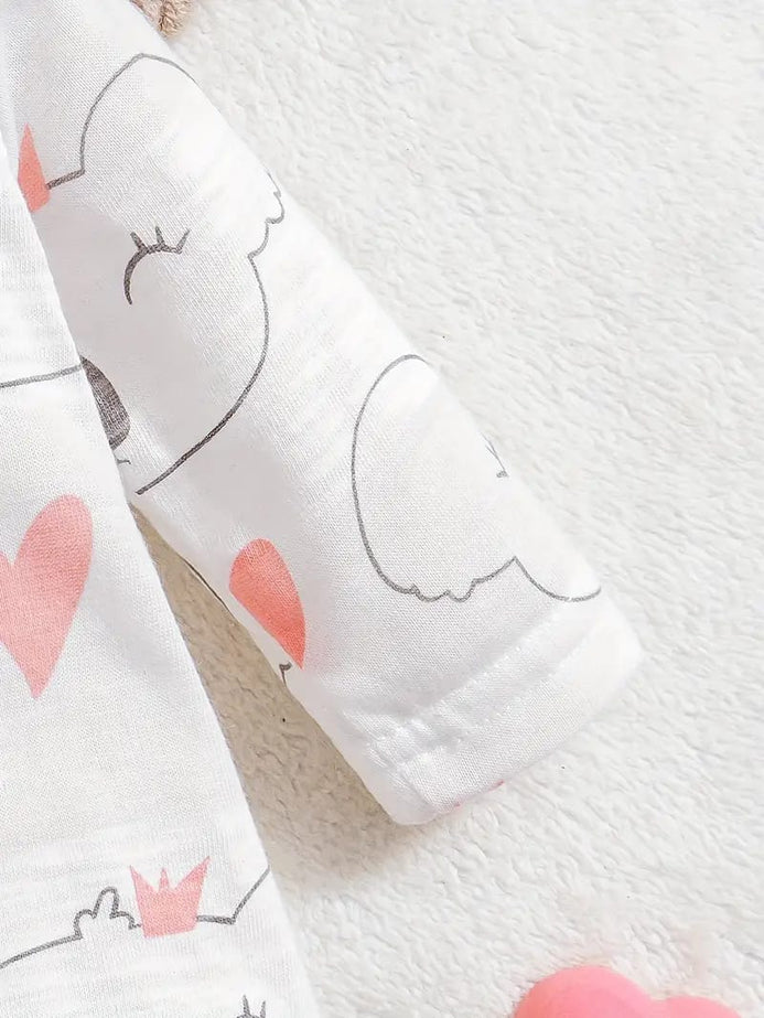 - Cute Baby Girl Onesies Knitted Fabric Long Sleeve Footed Romper, Cartoon Pattern, Crew Neck, Slight Stretch, All-season, Regular Fit, for Outdoor BS6137B