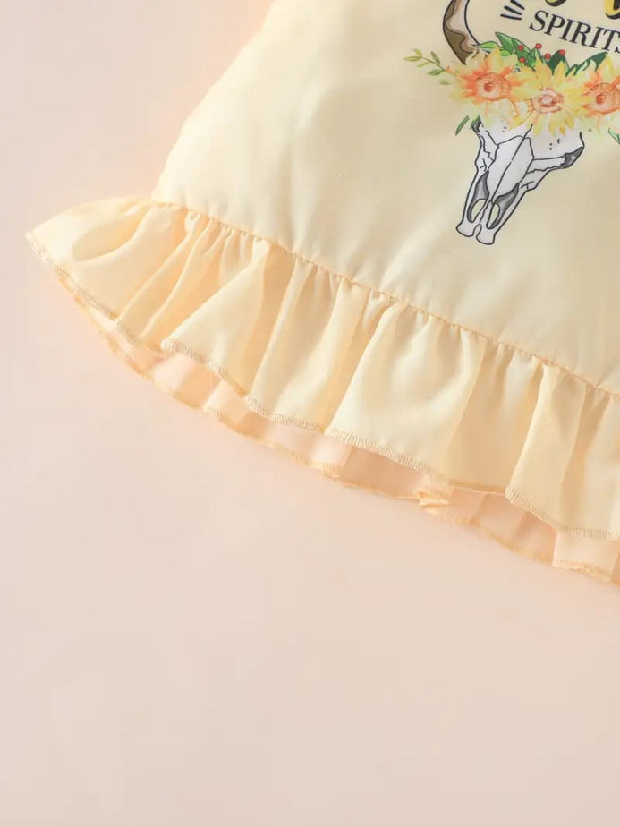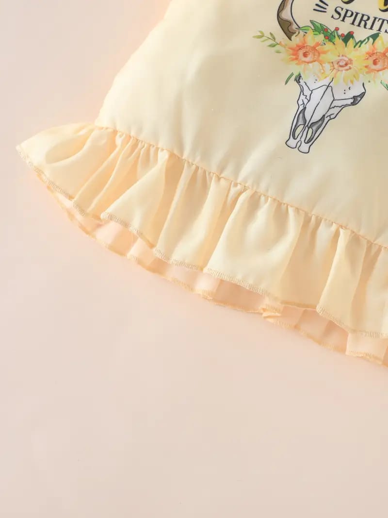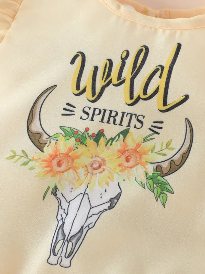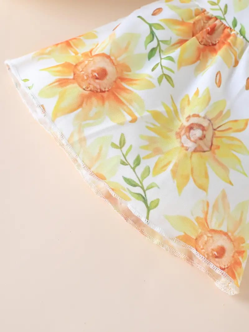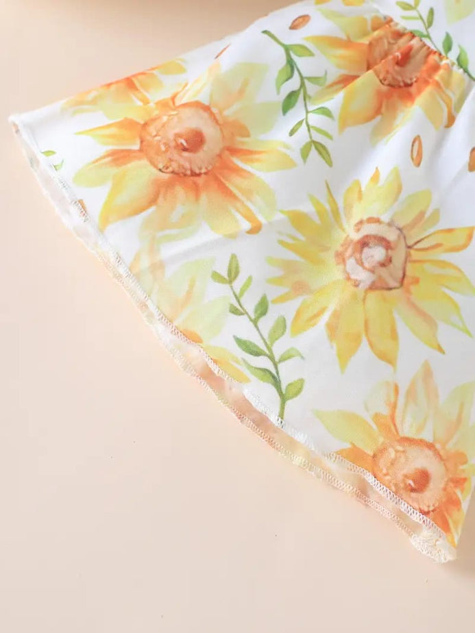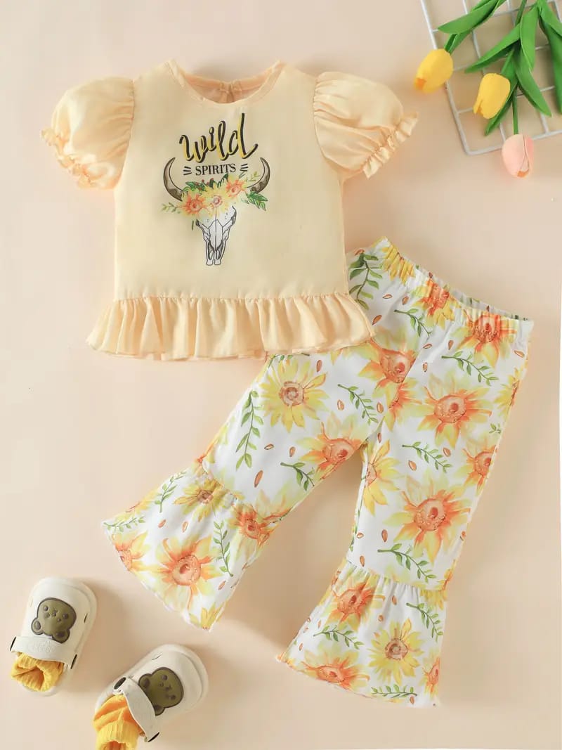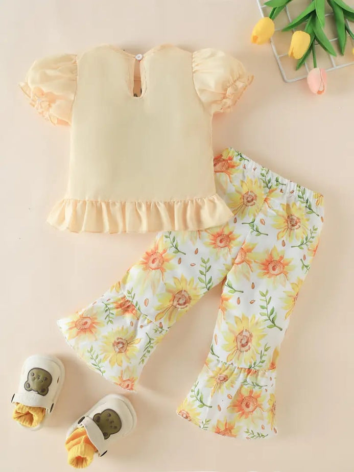Elegant Floral Polyester 100% Baby Girl 2pcs Set, Spring/Fall Princess Top with Animal Headdress Print & Sunflower Print Flared Legs Trousers for Outdoor FD6112C