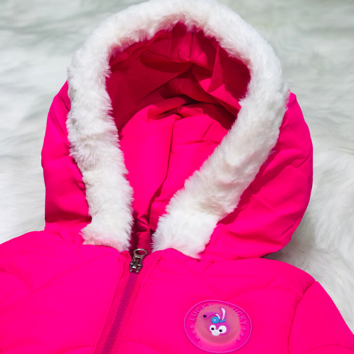 Girls Pink Warm Inner Fur Hooded Puffer Jacket HJ6201C