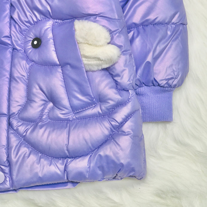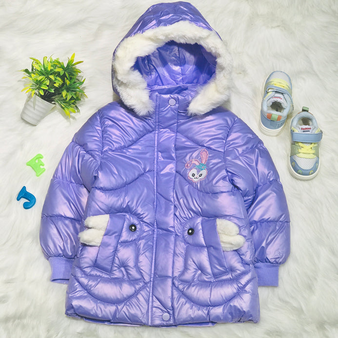 - Girls Purple Warm Inner Furr Hoodied Puffer Jacket HJ6202C