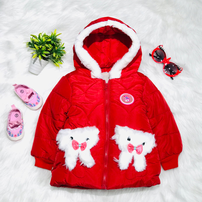 - Girls Red Warm Inner Furr Hoodied Puffer Jacket HJ6201A