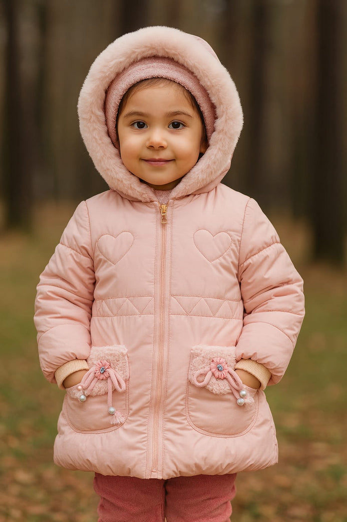 - Girls T. Pink Warm Inner Furr Hoodied Puffer Jacket HJ6205