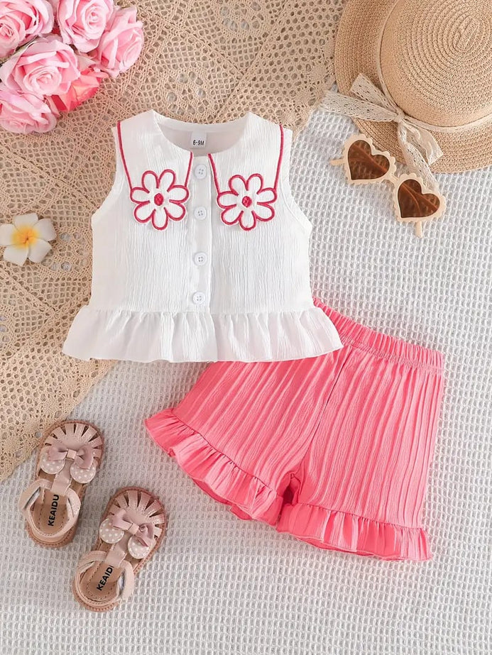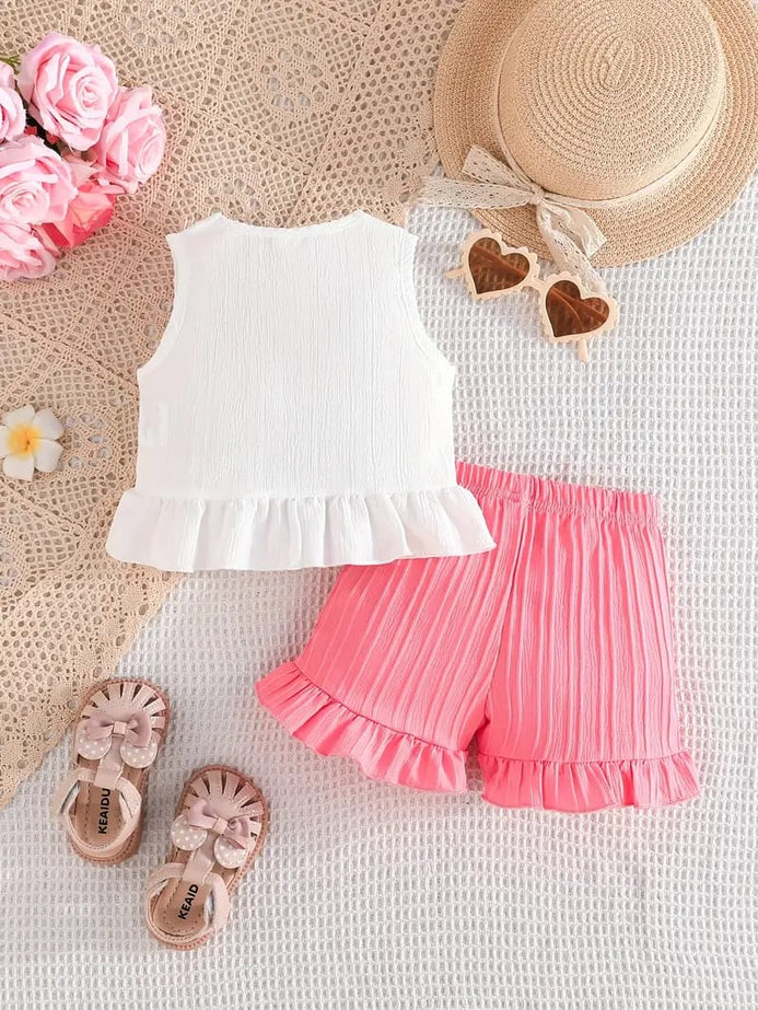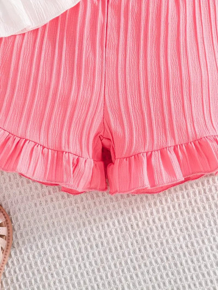 Girls' Vacation Style Fashion Shorts Set, Perfect for Outdoor FD6141G