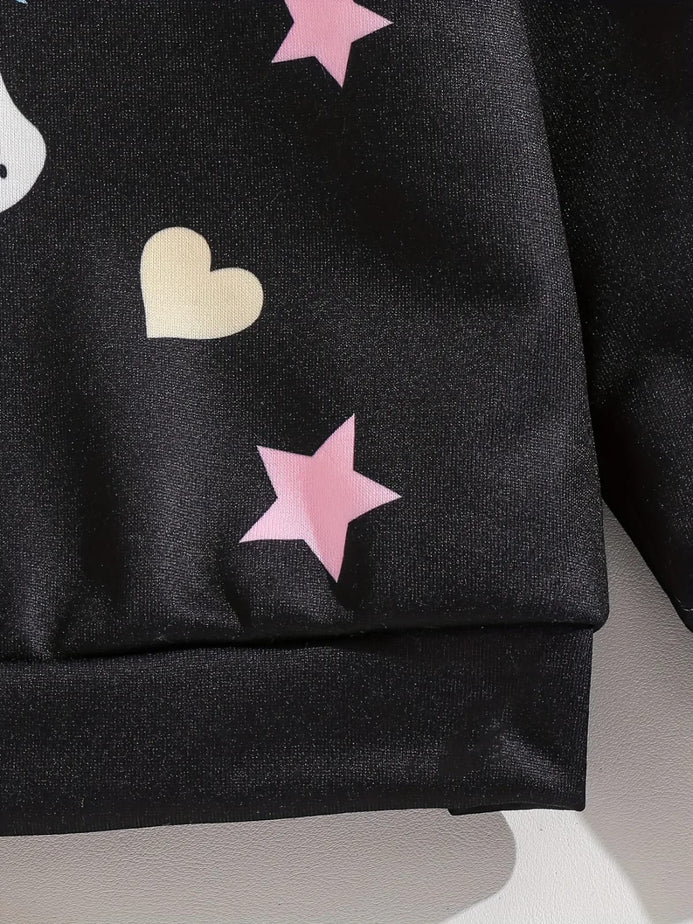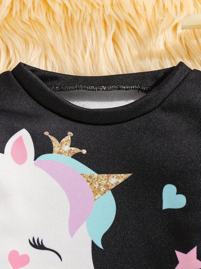 Kids' Casual Crew Neck Unicorn Graphic Sweatshirt with Embroidered Details - 100% Polyester, Slight Stretch, Knit Fabric, Alphabets Pattern, Perfect for Spring/Fall SS6096C