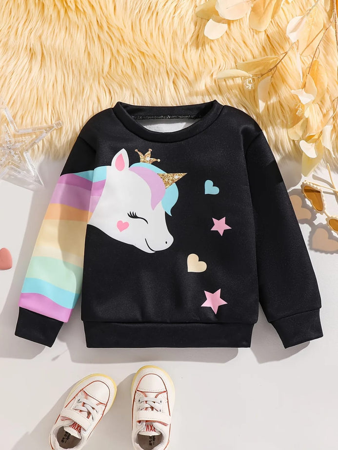 - Kids' Casual Crew Neck Unicorn Graphic Sweatshirt with Embroidered Details - 100% Polyester, Slight Stretch, Knit Fabric, Alphabets Pattern, Perfect for Spring/Fall SS6096C