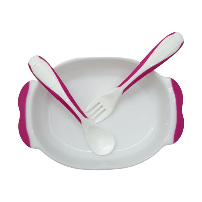 - Mini Feeding Bowl Pink & White with Fork & Spoon 10+m BCP1002B