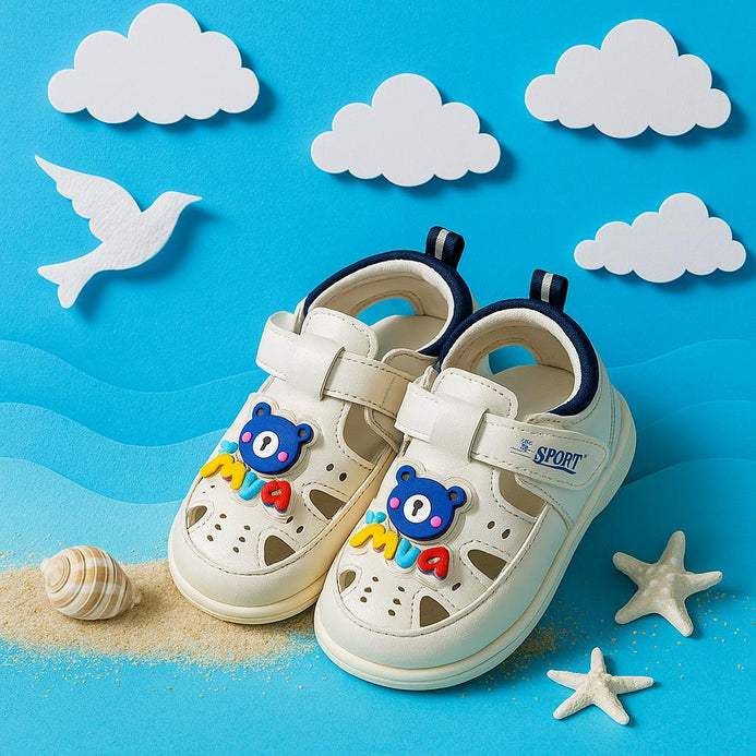 - MUA White & Navy-Blue Baby Sandals SDL7526B