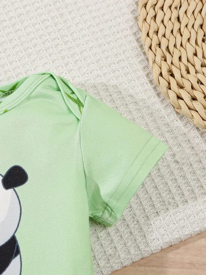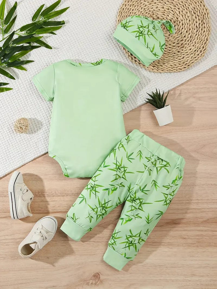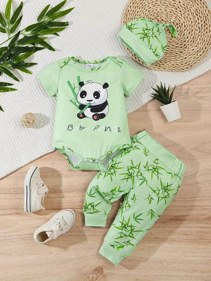 - Newborn Baby Boy and Girl Spring/Autumn Panda Print Short Sleeve Top with Pants and Hat Thin Outdoor Three-Piece Set, Perfect for Outdoor BS6048A