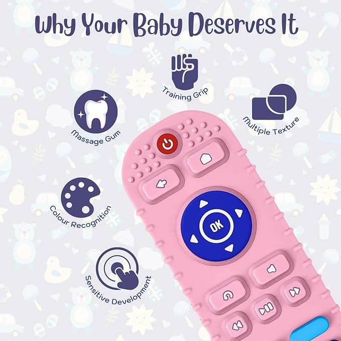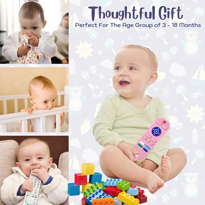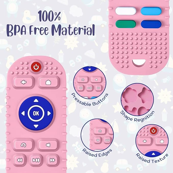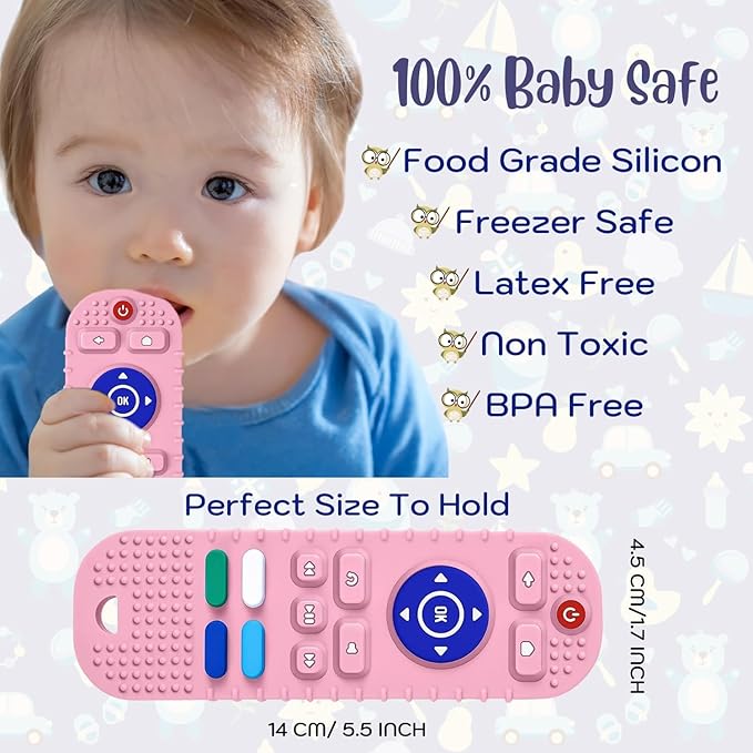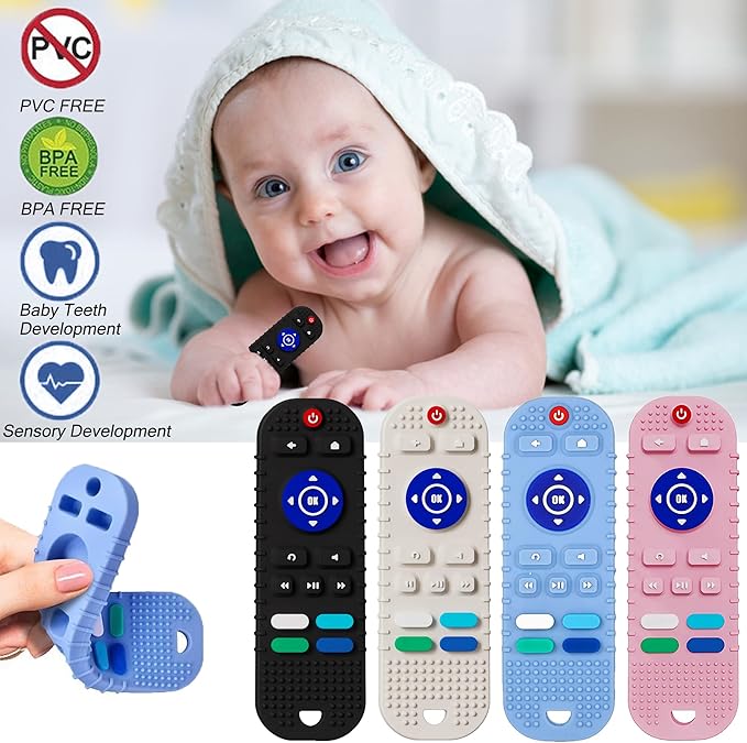 Baby Teething Toys Food Grade Silicone Teether for Babies 3 6 9 12 Months, TV Remote Shape Toddlers Chew Toys, BPA Free Boys Girls Baby Teething Toys