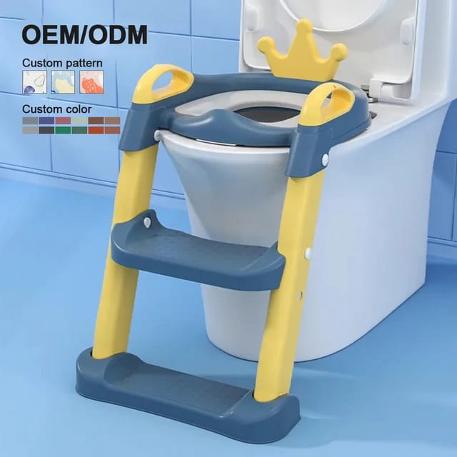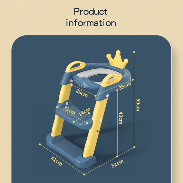 Yellow & Blue Crown Design Kids Toilet Bowl Potty Ladder/ Training Seat with Adjustable Toilet Ladder BCP1042B